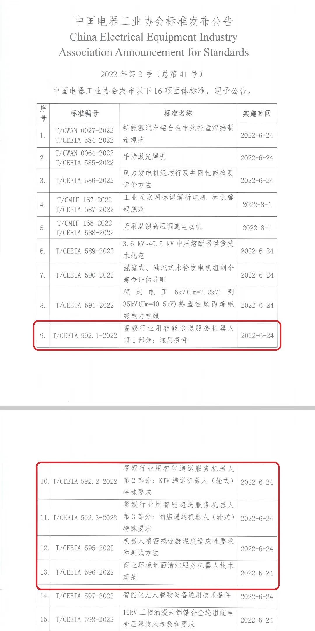 近日,中国电器工业协会发布了5项机器人团体标准,该5项标准由中电协电气场所用机器人安全与检测标准化专业委员会提出,由米兰国际足球赛官网牵头起草。