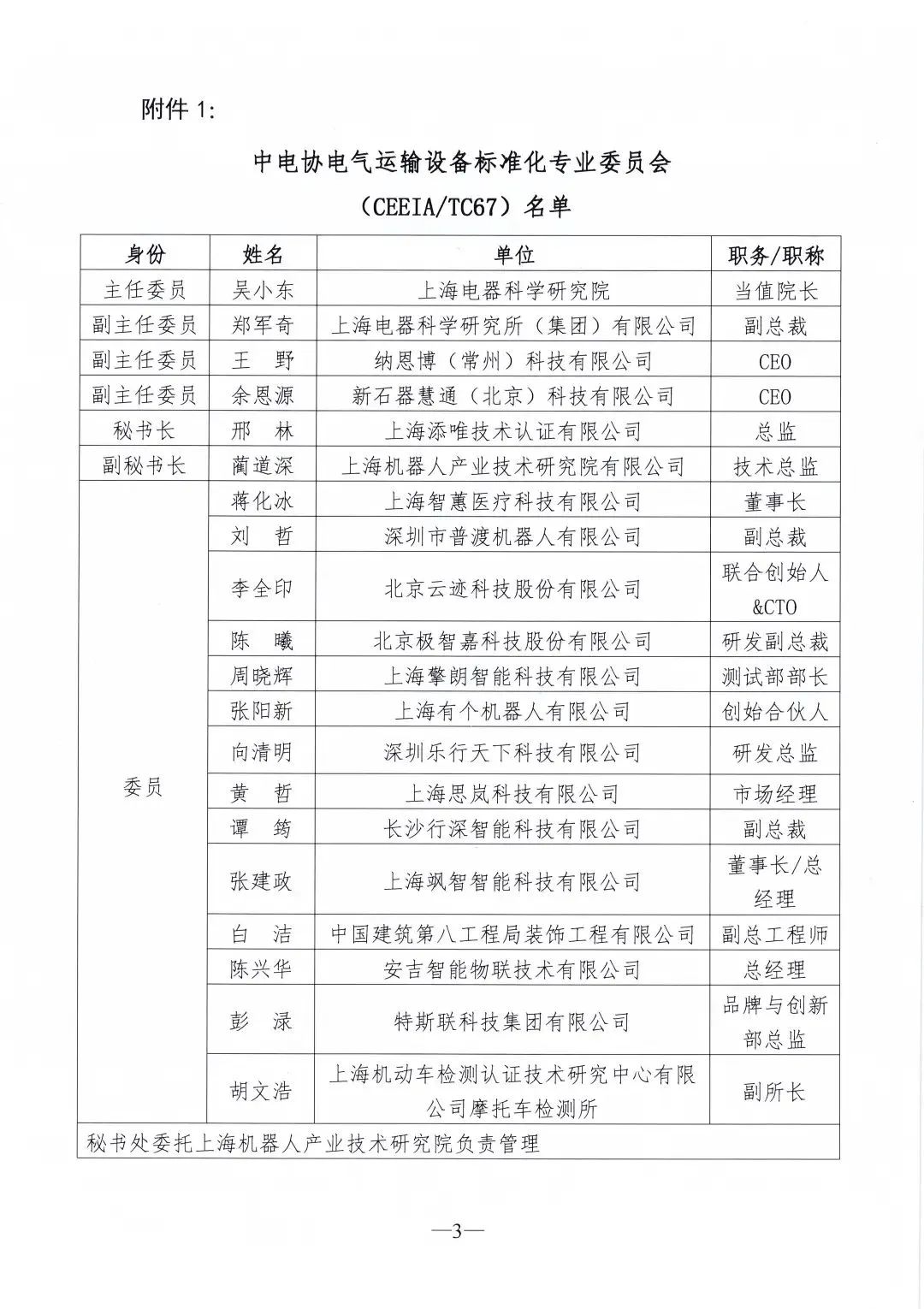 上海电器科学研究院吴小东担任主席。国内尚无对应的全国性标准化技术委员会,产业发展迅速,对标准需求旺盛。